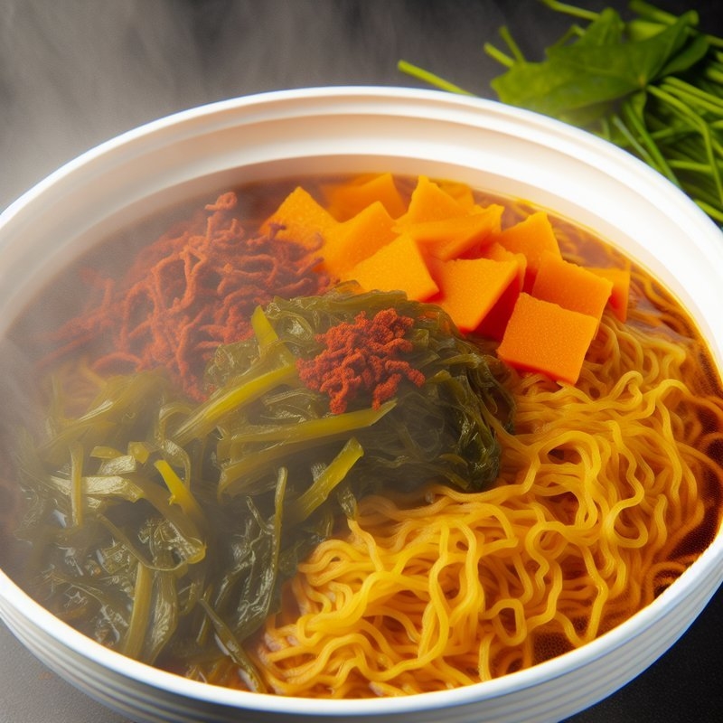 สารประกอบคุณภาพสูง เช่น นู๊ดลิส, เวอร์มิเชลลี่, ซอส, เครื่องปรุงปรุง, ผักเขียวมัสตาร์ดทอด, และไข่ผสมเข้ากันอย่างสอดคล้อง เพื่อสร้างประสบการณ์อาหารที่อร่อยและพอใจบรรจุในถัง, ผลิตภัณฑ์ยังสดใส ขณะที่การออกแบบที่โดดเด่นเพิ่มความเป็นจริง